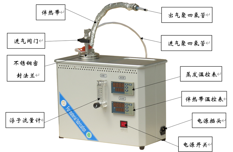 NOBODY uniform temperature susaturated gas generator is mainly used for the evaporation of liquid reactants, can load gas to drive the evaporated reaction gas into the reaction chamber, can also achieve the reaction gas under vacuum conditions, easy to operate, and the reaction tube is very easy to clean, the pipe containing the solution is made of high-purity quartz tube, resistant to high temperature and acid and alkali corrosion, sealed with 304 stainless steel flange seal. The inlet pipe is directly inserted into the solution to ensure the complete evaporation of the reaction solution to the maximum extent. The outside of the outlet pipe is wrapped with silica gel accompanied by tropical heat preservation to prevent the evaporating gas from condensing after cold.